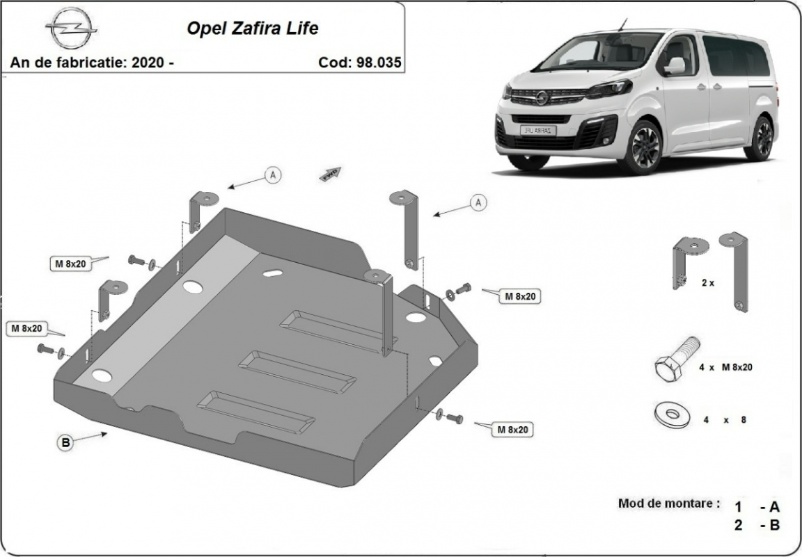 Acél AdBlue tartályvédő lemez Opel Zafira Life (2020-2026)