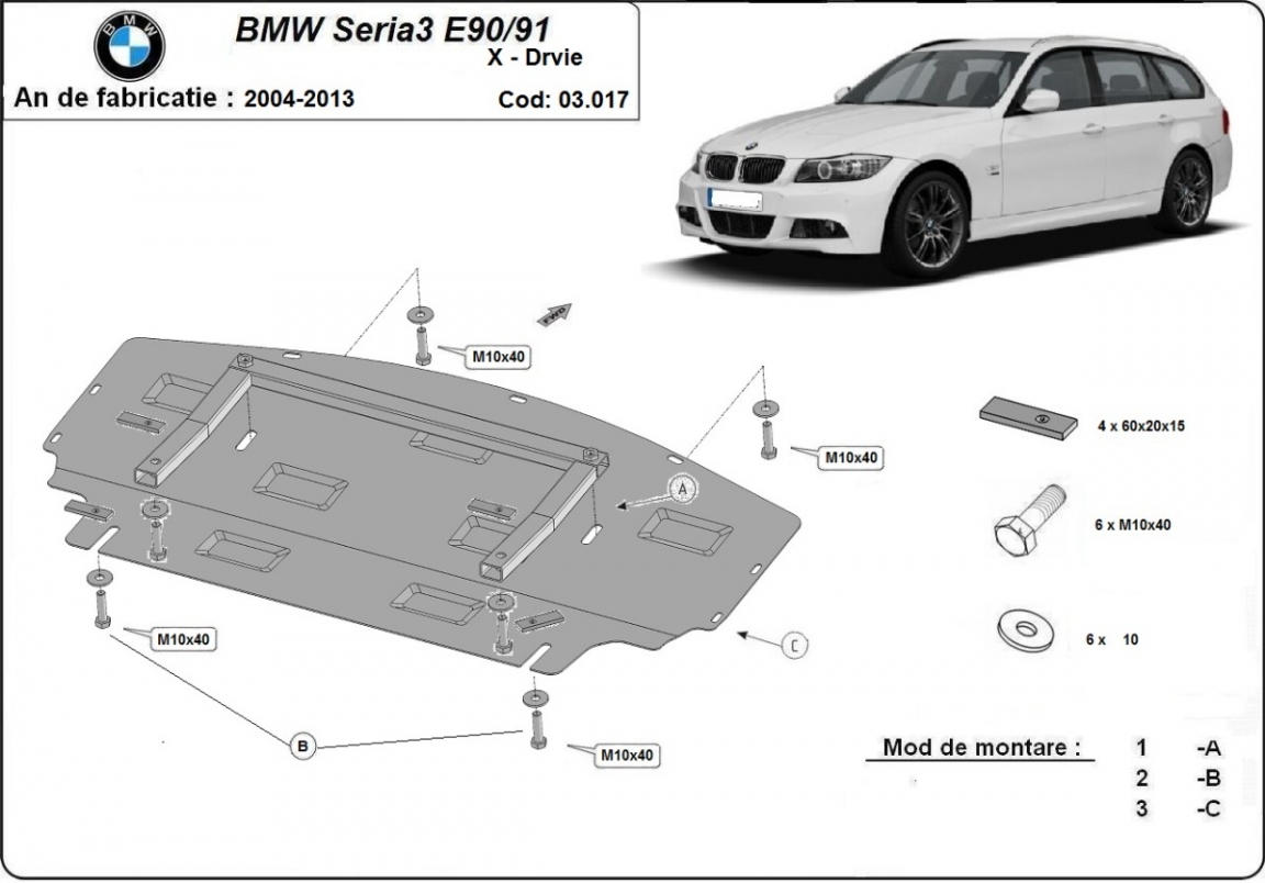 | Minden autóban gyári csavarlyukak vannak a motorvédő lemez felszereléséhez, ami nagyon egyszerűvé teszi a felszerelést. Ezt megteheti saját maga, vagy bármely autószervizben. |
