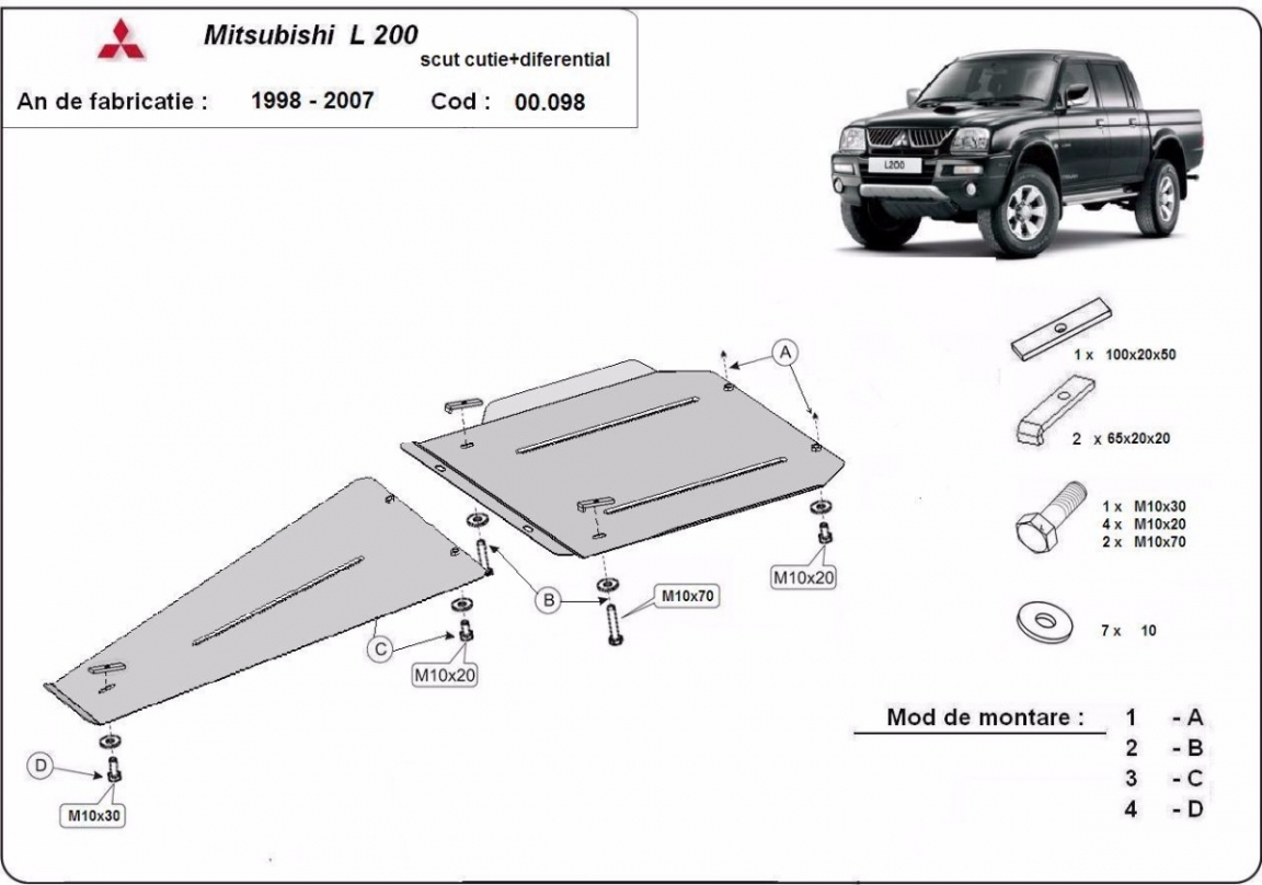 Acél kapcsolószekrény, differenciálmű védőlemez Mitsubishi L 200 (1998-2007)