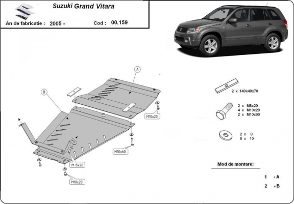 Protection moteur et boite de transfert pour Grand Vitara II (2012). Rustique, Solide et se place facilement
