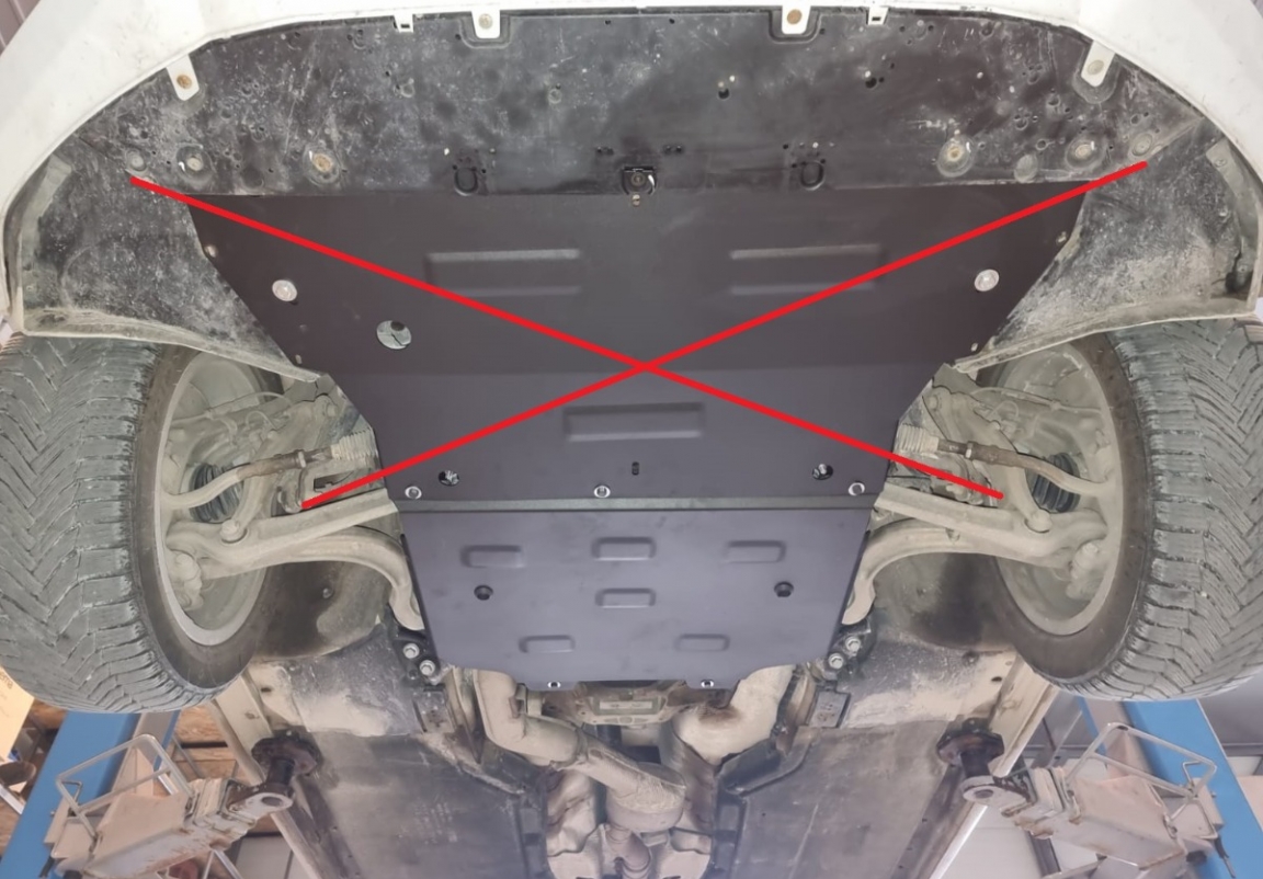 | A motorvédő lemez felszerelése nem jár semmilyen mechanikai változtatást a jármű szerkezetét illetően. |