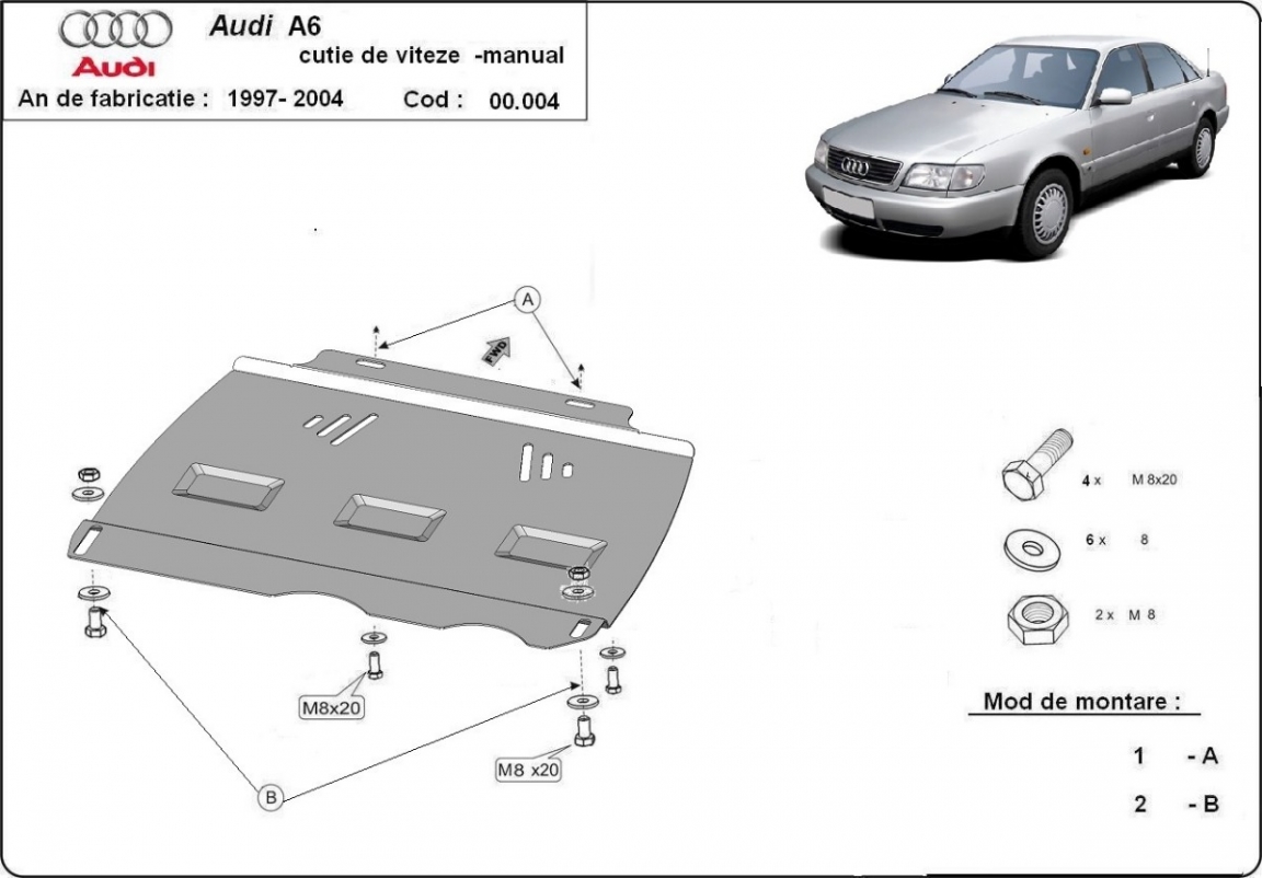 | Minden autóban gyári csavarlyukak vannak a motorvédő lemez felszereléséhez, ami nagyon egyszerűvé teszi a felszerelést. Ezt megteheti saját maga, vagy bármely autószervizben. |