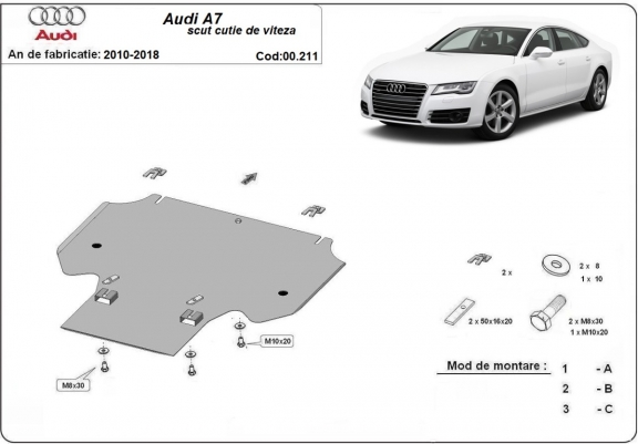 Acél kapcsolószekrény védőlemez Audi A7 (2011-2018)