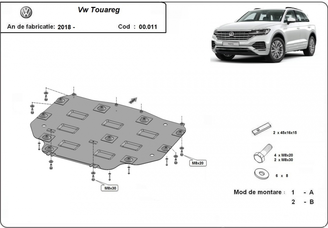 | A motorvédő lemez felszerelése nem jár semmilyen mechanikai változtatást a jármű szerkezetét illetően. |