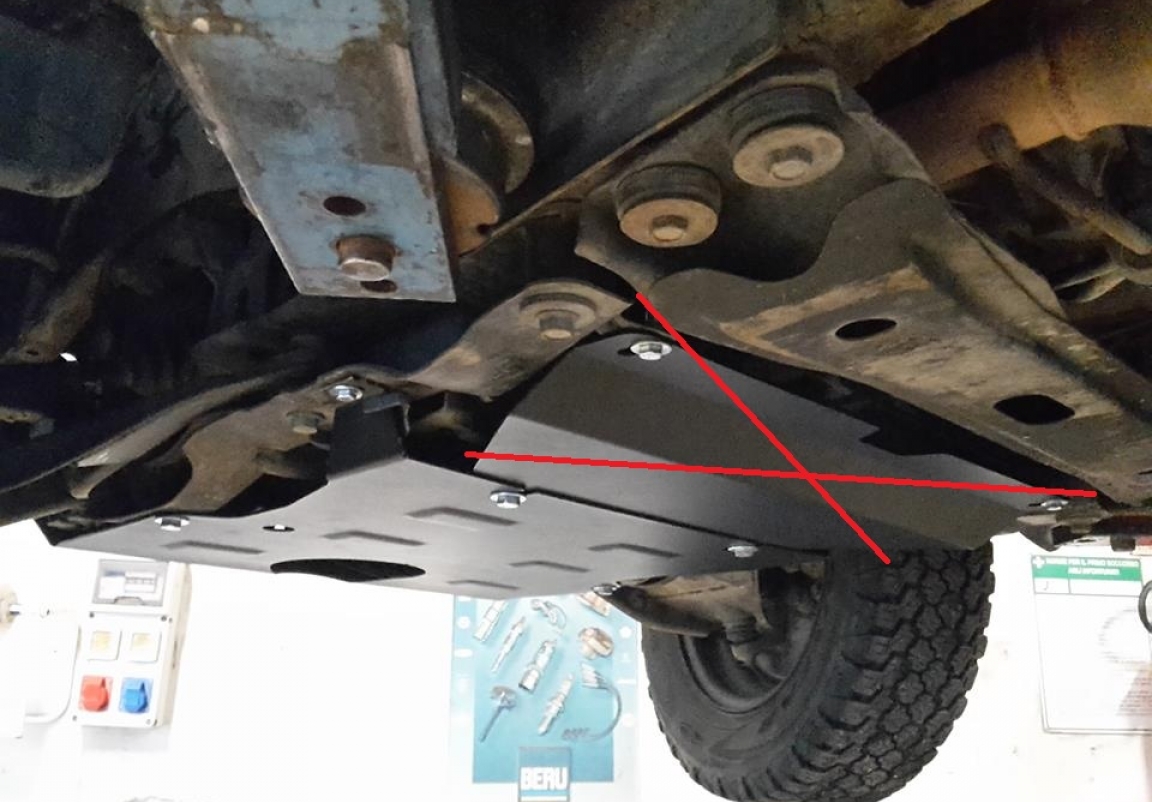 | A motorvédő lemez felszerelése nem jár semmilyen mechanikai változtatást a jármű szerkezetét illetően. |