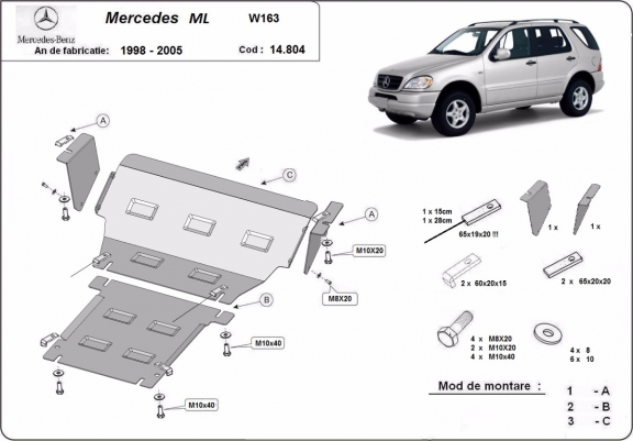 Acél motor, hűtő védőlemez Mercedes ML W163