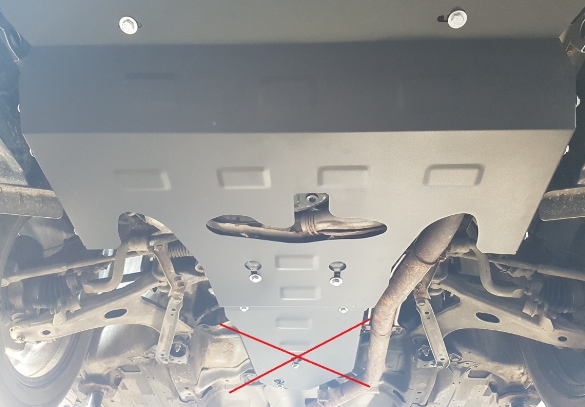 | A motorvédő lemez felszerelése nem jár semmilyen mechanikai változtatást a jármű szerkezetét illetően. |