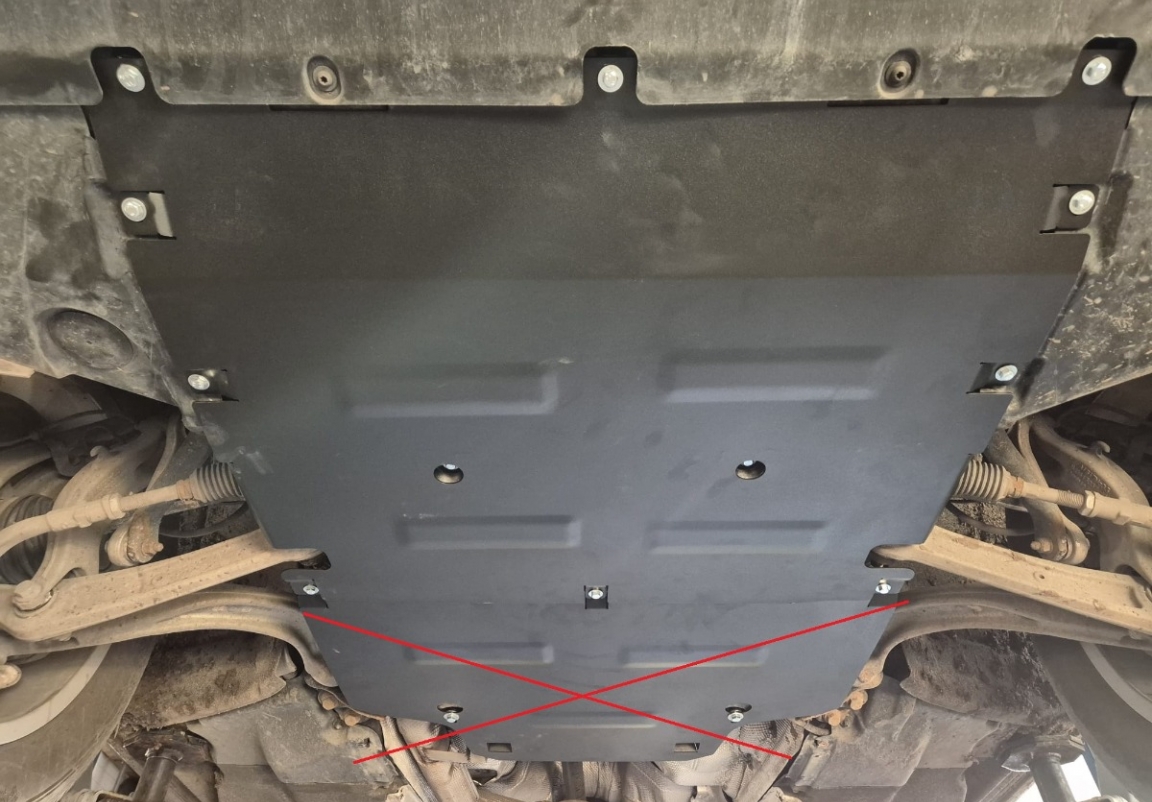 | A motorvédő lemez felszerelése nem jár semmilyen mechanikai változtatást a jármű szerkezetét illetően. |