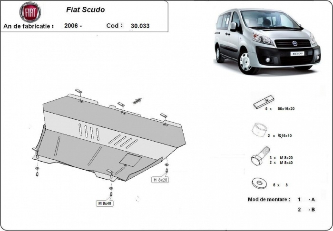 Acél motor, kapcsolószekrény, hűtő védőlemez Fiat Scudo
