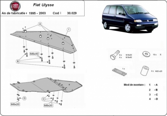 Acél motor, kapcsolószekrény, hűtő védőlemez Fiat Ulysse (1995-2003)