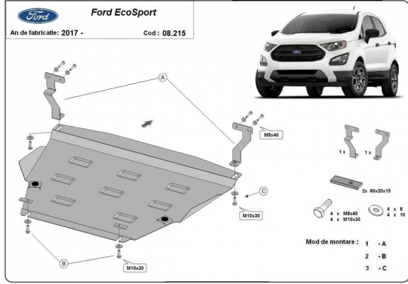 Acél motor, kapcsolószekrény, hűtő védőlemez Ford EcoSport (2017-2026)