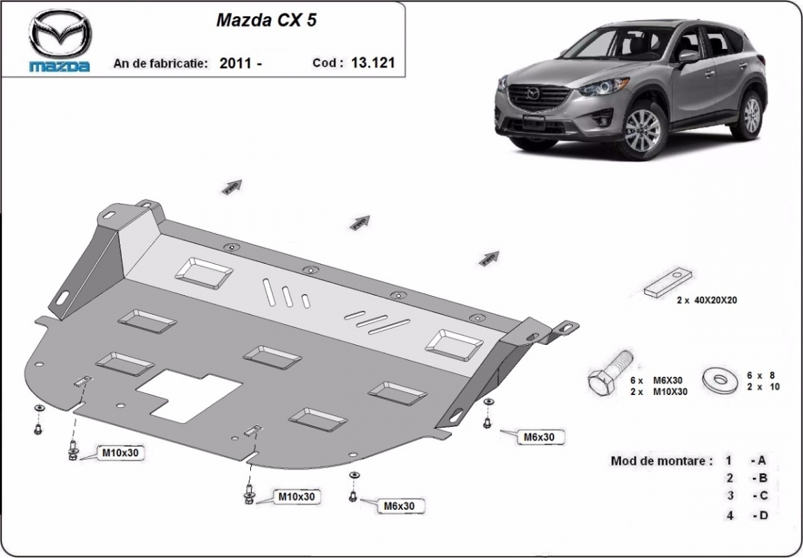 | Minden autóban gyári csavarlyukak vannak a motorvédő lemez felszereléséhez, ami nagyon egyszerűvé teszi a felszerelést. Ezt megteheti saját maga, vagy bármely autószervizben. |