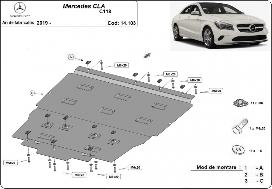 Acél motorvédő lemezünk a következőket védi: motor, kapcsolószekrény, radiátor A motorvédő lemez új, és tökéletesen illeszkedik a Mercedes CLA C118 összes 2019 és 2026 között gyártott változatához. 2 mm vastag Acéllemezből készült. Gyárilag kialakított pontokhoz csatlakozik. Méretpontos, A38 H2H acéllemez Minden szükséges tartozék és csavar a csomagban! Minden motorvédőlemezünk porszórt bevonattal van ellátva(porfestett felület), hogy megakadályozza a korróziót. Méretpontos acél lemezekből készül. |