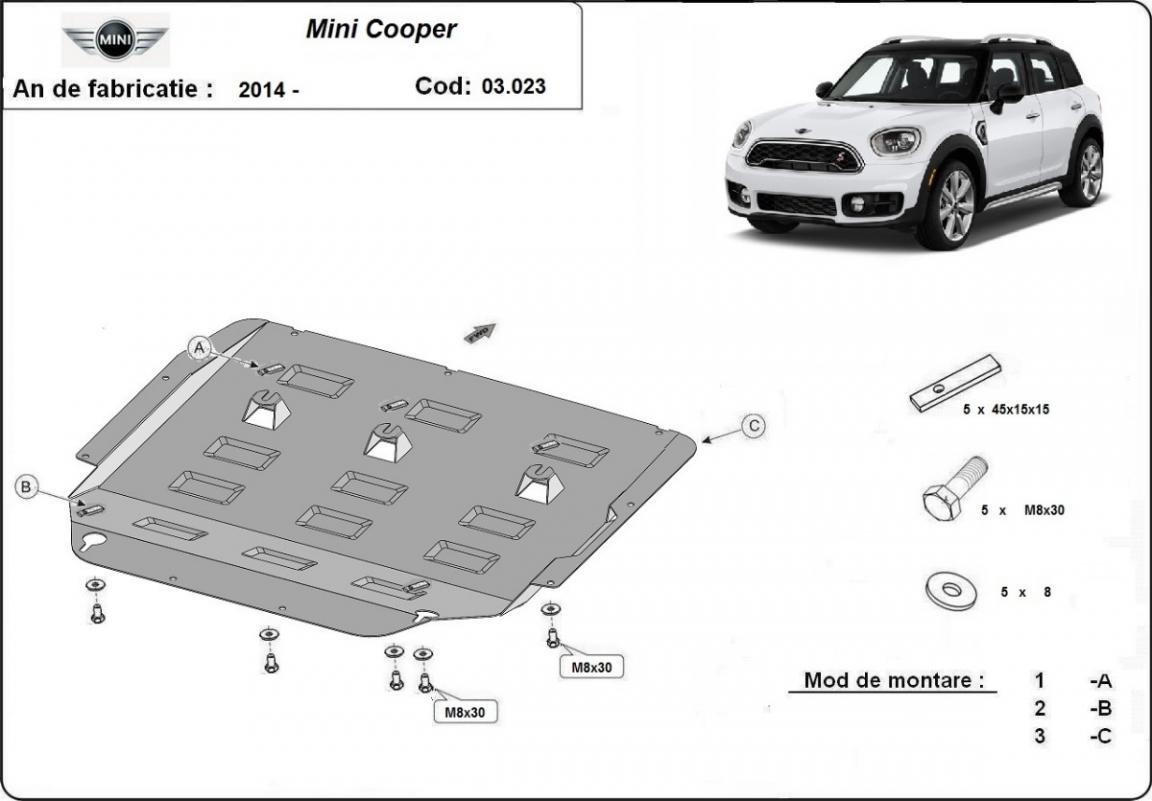 Acél motorvédő lemezünk a következőket védi: motor, kapcsolószekrény, radiátor A motorvédő lemez új, és tökéletesen illeszkedik a Mini Cooper összes 2014 és 2026 között gyártott változatához. 2 mm vastag Acéllemezből készült. Gyárilag kialakított pontokhoz csatlakozik. Méretpontos, A38 H2H acéllemez Minden szükséges tartozék és csavar a csomagban! Minden motorvédőlemezünk porszórt bevonattal van ellátva(porfestett felület), hogy megakadályozza a korróziót. Méretpontos acél lemezekből készül. |