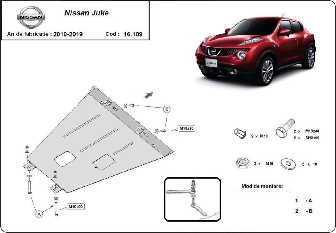 | Minden autóban gyári csavarlyukak vannak a motorvédő lemez felszereléséhez, ami nagyon egyszerűvé teszi a felszerelést. Ezt megteheti saját maga, vagy bármely autószervizben. |
