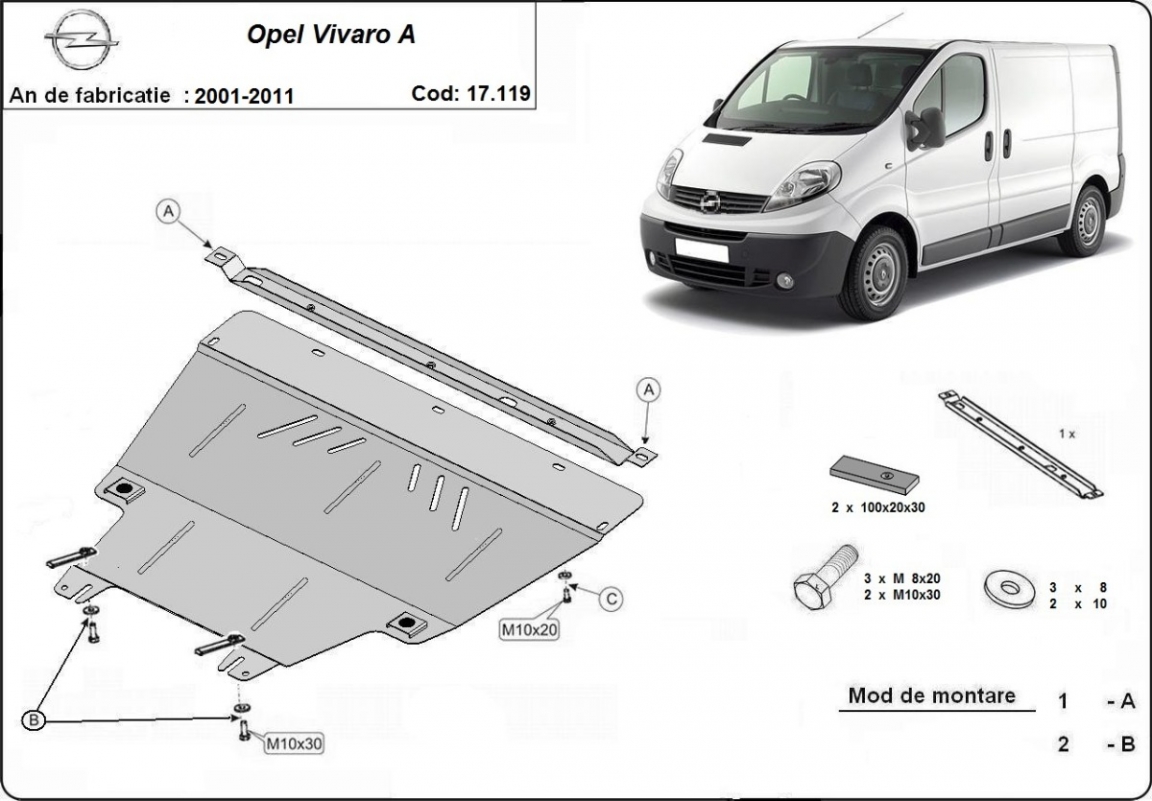 Acél motor, kapcsolószekrény, hűtő védőlemez Opel Vivaro