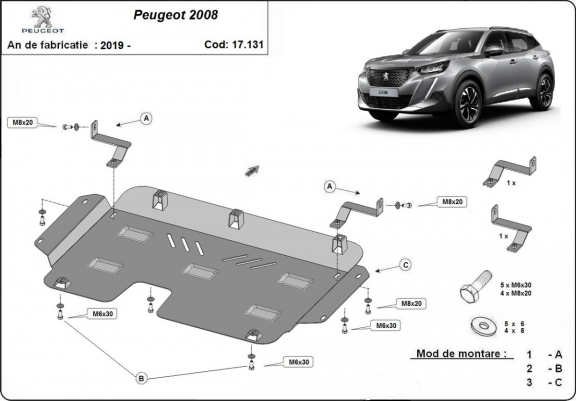 Acél motor, kapcsolószekrény, hűtő védőlemez Peugeot 2008 (2019-2026)