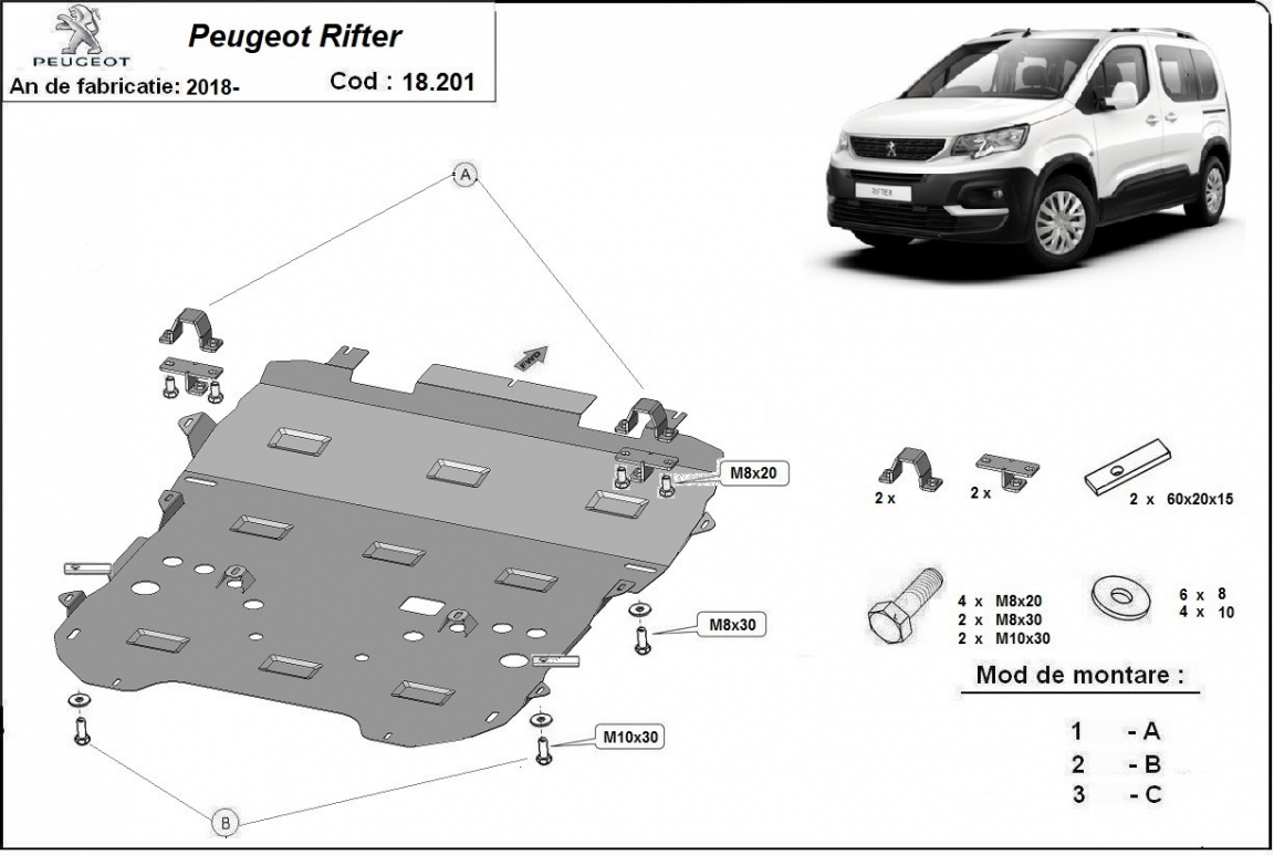 | Minden autóban gyári csavarlyukak vannak a motorvédő lemez felszereléséhez, ami nagyon egyszerűvé teszi a felszerelést. Ezt megteheti saját maga, vagy bármely autószervizben. |