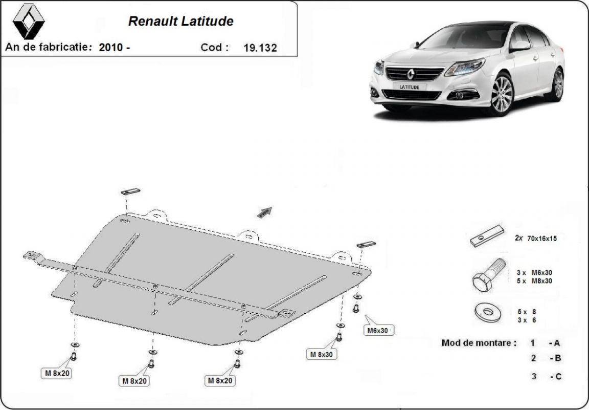 Acél motor, kapcsolószekrény, hűtő védőlemez Renault Latitude