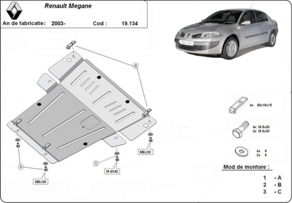 Pour megane II ph2, il faut revoir tout ! - besoin de modifier la trappe de vidange pour accéder au bouchon de carter, - trous de fixation latéraux décalé d'un bon cm, - à l'avant n'utilise pas les fixation d'origine donc besoin de découper des cales pour éviter que la protection qui vient du PC ne soit pas tenue - joue qui dépassent dans le passage de roue (juste une découpe de 2cm en arc de cercle à faire comme le cache d'origine) et qui ne sont pas tenues (prévoir quelques trous et vis) Bref même après avoir démonte le demi berceau et fait les premières modifs, pas eu le temps de monter. Dispo pour indiquer sur un plan ce qu'il faut modifier pour que ce soit plug & play...