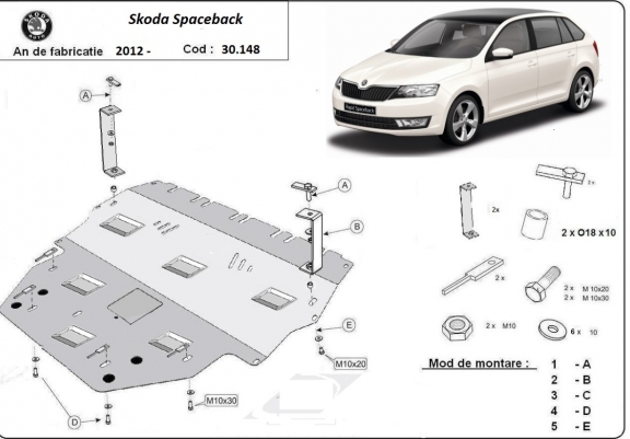 Acél motor, kapcsolószekrény, hűtő védőlemez Skoda Spaceback