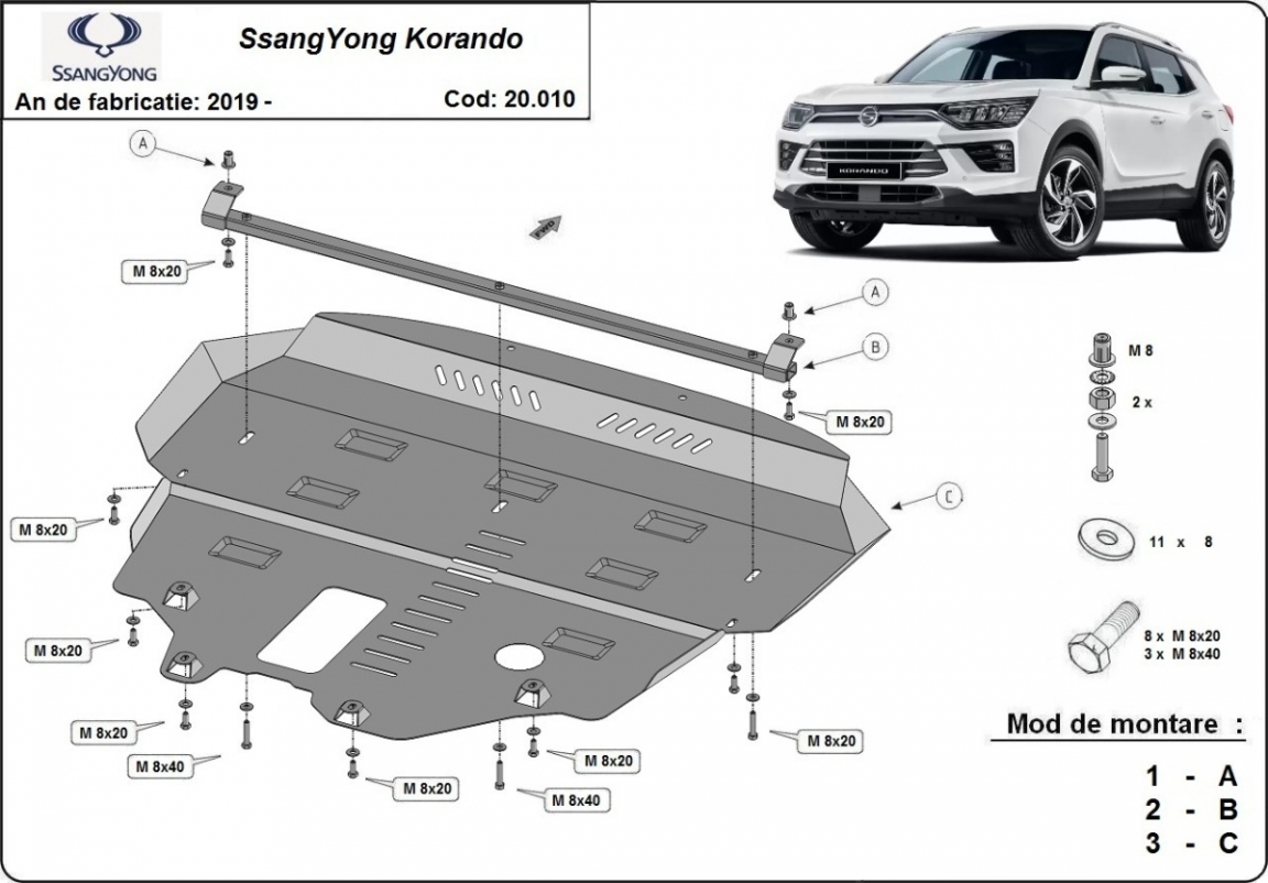 Acél motor, kapcsolószekrény, hűtő védőlemez SsangYong Korando (2019-2026)