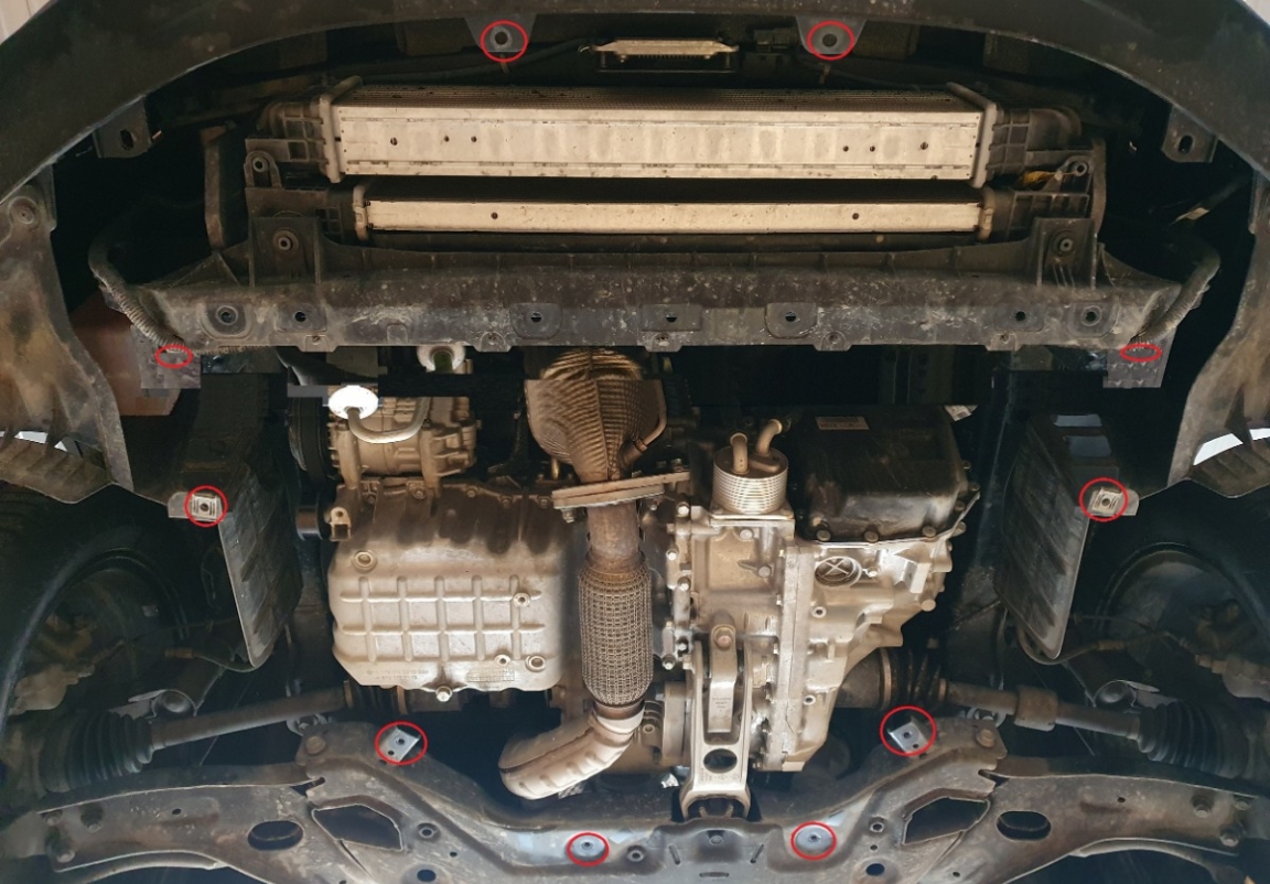 | Minden autóban gyári csavarlyukak vannak a motorvédő lemez felszereléséhez, ami nagyon egyszerűvé teszi a felszerelést. Ezt megteheti saját maga, vagy bármely autószervizben. |