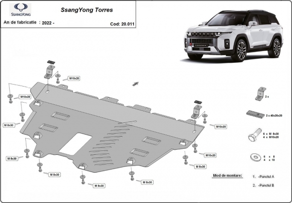 Acél motorvédő lemezünk a következőket védi: motor, kapcsolószekrény, radiátor A motorvédő lemez új, és tökéletesen illeszkedik a Ssangyong Torres összes 2022 és 2026 között gyártott változatához. 2 mm vastag Acéllemezből készült. Gyárilag kialakított pontokhoz csatlakozik. Méretpontos, A38 H2H acéllemez Minden szükséges tartozék és csavar a csomagban! Minden motorvédőlemezünk porszórt bevonattal van ellátva(porfestett felület), hogy megakadályozza a korróziót. Méretpontos acél lemezekből készül. |