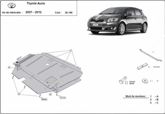 Acél motor, kapcsolószekrény, hűtő védőlemez Toyota Auris (2007-2012)