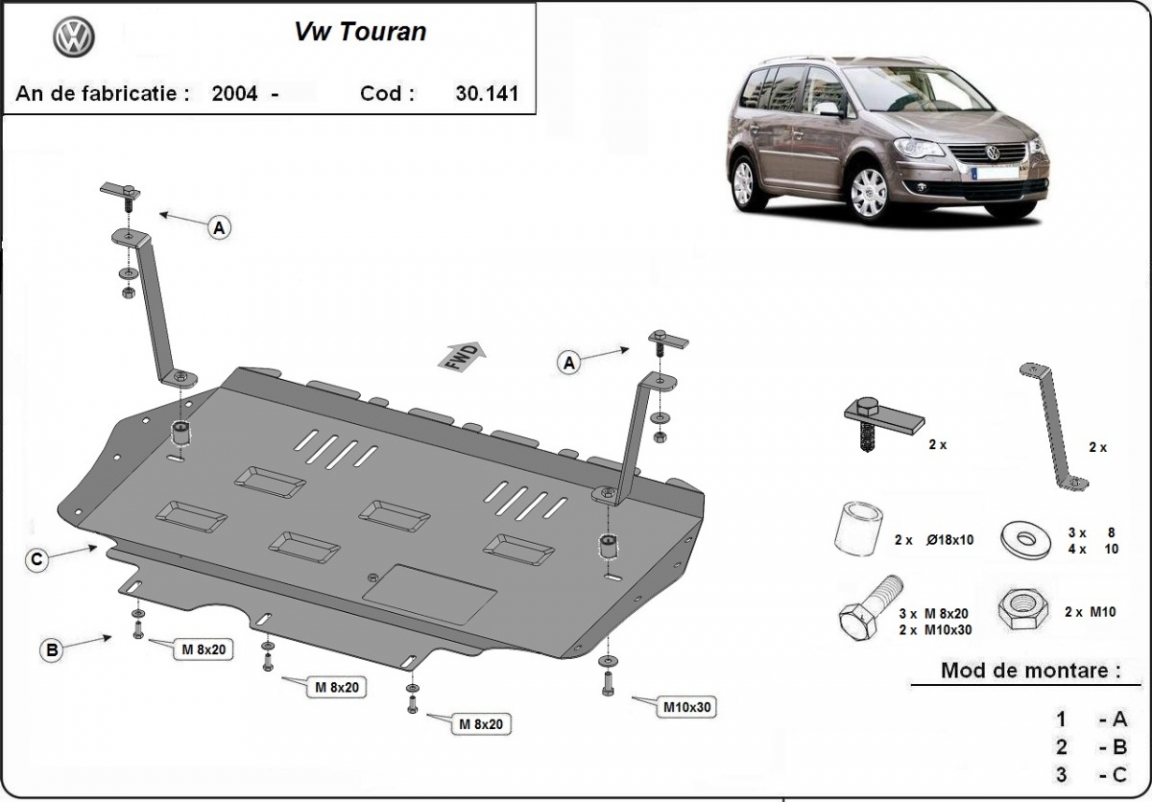 | Minden autóban gyári csavarlyukak vannak a motorvédő lemez felszereléséhez, ami nagyon egyszerűvé teszi a felszerelést. Ezt megteheti saját maga, vagy bármely autószervizben. |