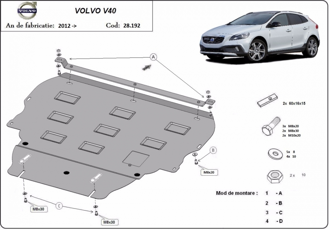| Minden autóban gyári csavarlyukak vannak a motorvédő lemez felszereléséhez, ami nagyon egyszerűvé teszi a felszerelést. Ezt megteheti saját maga, vagy bármely autószervizben. |