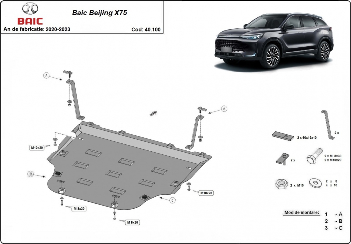 Acél motor, kapcsolószekrény, hűtő védőlemez Baic Beijing X75 (2020-2023)
