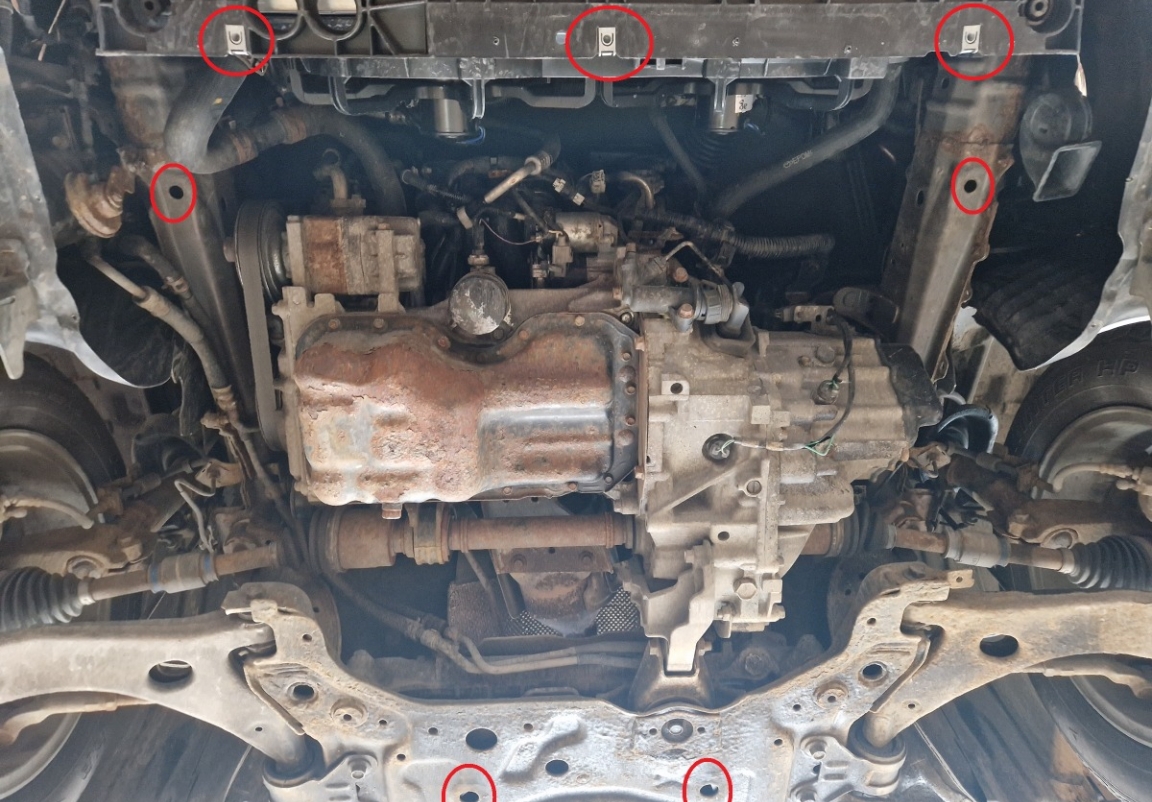 | Minden autóban gyári csavarlyukak vannak a motorvédő lemez felszereléséhez, ami nagyon egyszerűvé teszi a felszerelést. Ezt megteheti saját maga, vagy bármely autószervizben. |