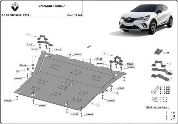 Acél motor, kapcsolószekrény, hűtő védőlemez Renault Captur (2019-2026)