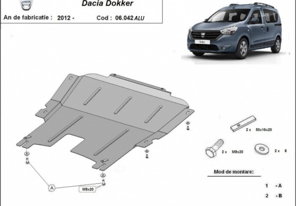 Acél motor, kapcsolószekrény védőlemez DACIA DOKKER (2012-2026)