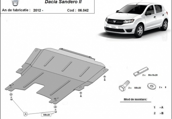 Acél motor, kapcsolószekrény védőlemez Dacia Sandero 2