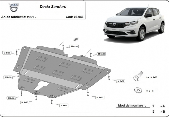 Acél motor, kapcsolószekrény védőlemez Dacia Sandero (2021-2026)