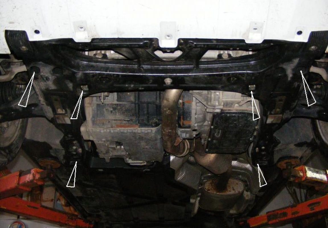 | Minden autóban gyári csavarlyukak vannak a motorvédő lemez felszereléséhez, ami nagyon egyszerűvé teszi a felszerelést. Ezt megteheti saját maga, vagy bármely autószervizben. |
