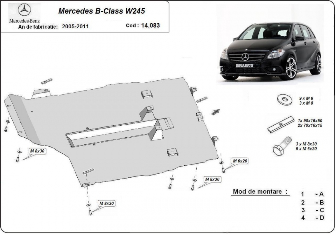 | Minden autóban gyári csavarlyukak vannak a motorvédő lemez felszereléséhez, ami nagyon egyszerűvé teszi a felszerelést. Ezt megteheti saját maga, vagy bármely autószervizben. |