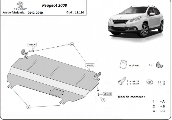 Acél motor, kapcsolószekrény védőlemez Peugeot 2008 (2013-2019)