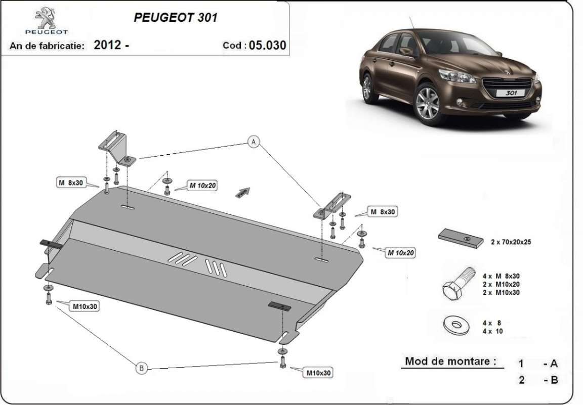 Acél motor, kapcsolószekrény védőlemez Peugeot 301 (2012-2026)