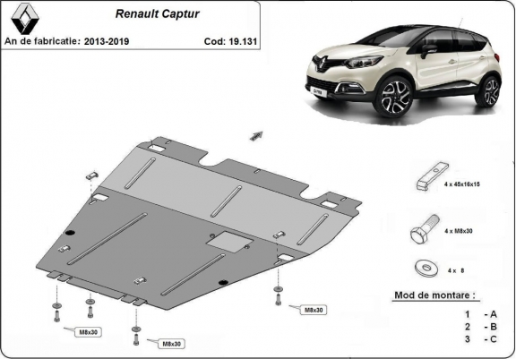 Acél motor, kapcsolószekrény védőlemez Renault Captur (2013-2019)