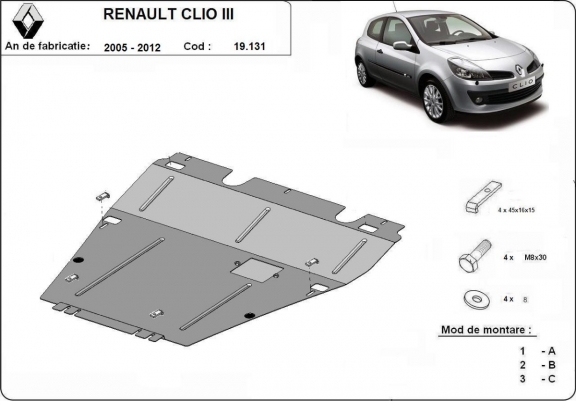 Acél motor, kapcsolószekrény védőlemez Renault Clio 3 (2005-2012)