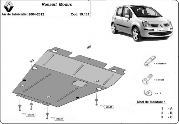 Acél motor, kapcsolószekrény védőlemez Renault Modus (2004-2012)