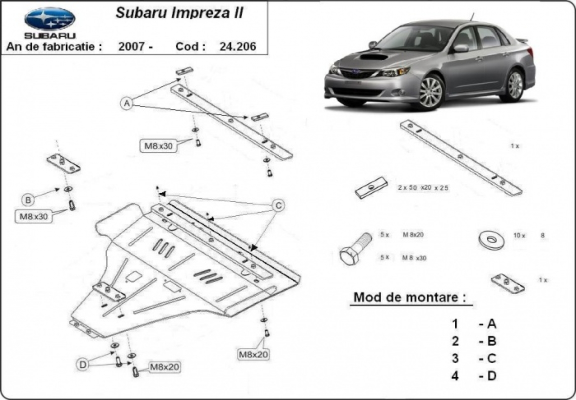 Acél motorvédő lemezünk a következőket védi: motor, kapcsolószekrény A motorvédő lemez új, és tökéletesen illeszkedik a Subaru Impreza, a következő motor/hajtás verziókkal: essence, 2007 és 2016 között gyártott modelekre. 2 mm vastag Acéllemezből készült. Gyárilag kialakított pontokhoz csatlakozik. Méretpontos, A38 H2H acéllemez Minden szükséges tartozék és csavar a csomagban! Minden motorvédőlemezünk porszórt bevonattal van ellátva(porfestett felület), hogy megakadályozza a korróziót. Méretpontos acél lemezekből készül. |