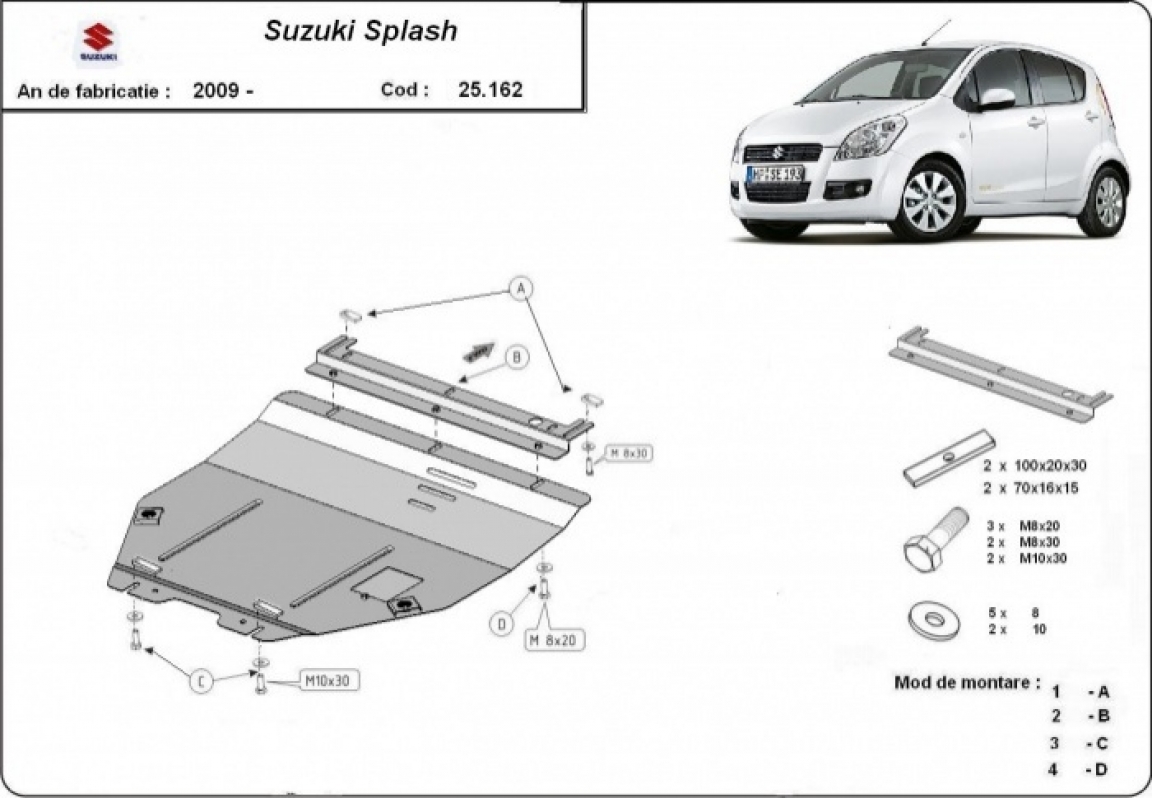 Acél motor, kapcsolószekrény védőlemez Suzuki Splash an (2009-2016)