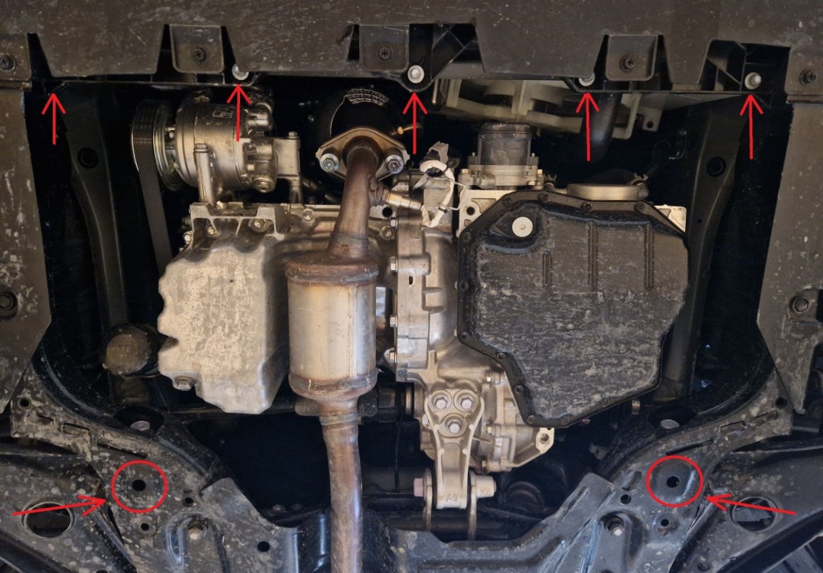 | Minden autóban gyári csavarlyukak vannak a motorvédő lemez felszereléséhez, ami nagyon egyszerűvé teszi a felszerelést. Ezt megteheti saját maga, vagy bármely autószervizben. |
