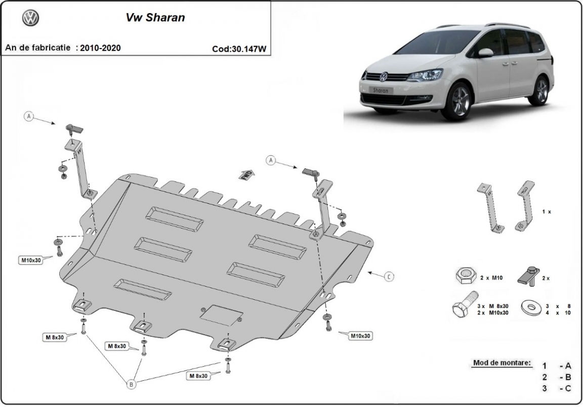 | Minden autóban gyári csavarlyukak vannak a motorvédő lemez felszereléséhez, ami nagyon egyszerűvé teszi a felszerelést. Ezt megteheti saját maga, vagy bármely autószervizben. |