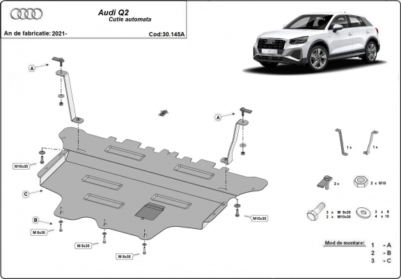 Acél motor, sebességváltó, hűtő, első lökhárító védőlemez Audi Q2 (2021-2026)
