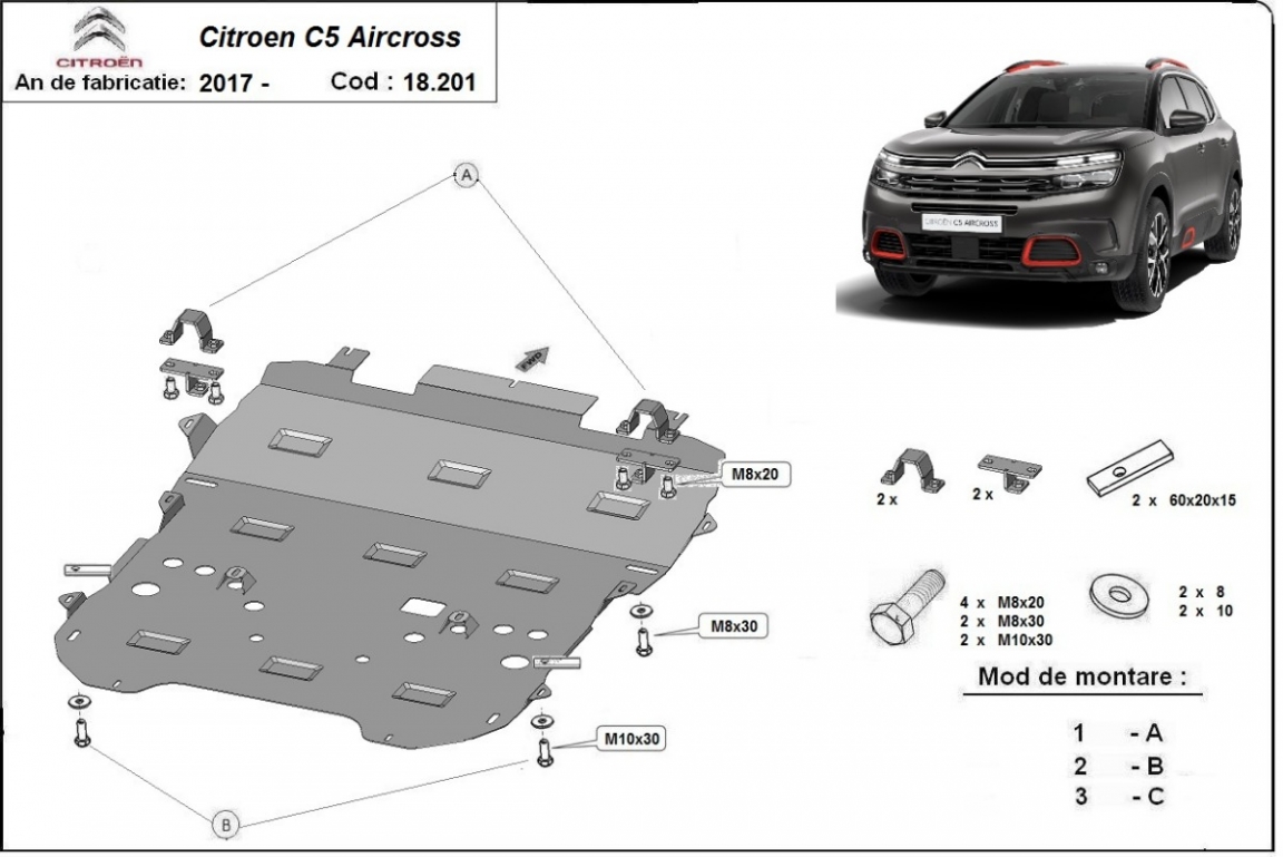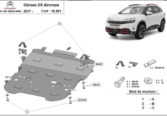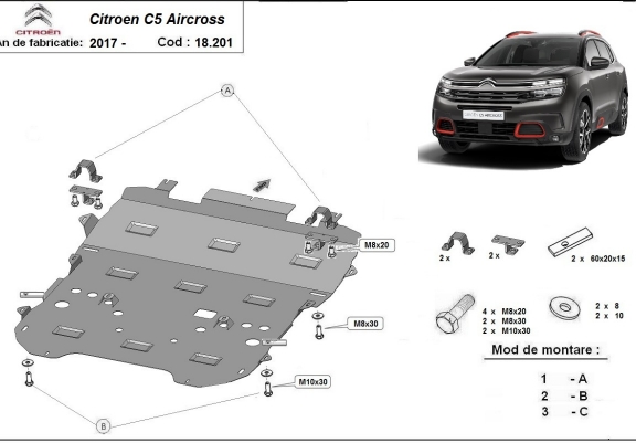 Acél motor, sebességváltó, hűtő, első lökhárító védőlemez Citroen C5 Aircross (2017-2026)
